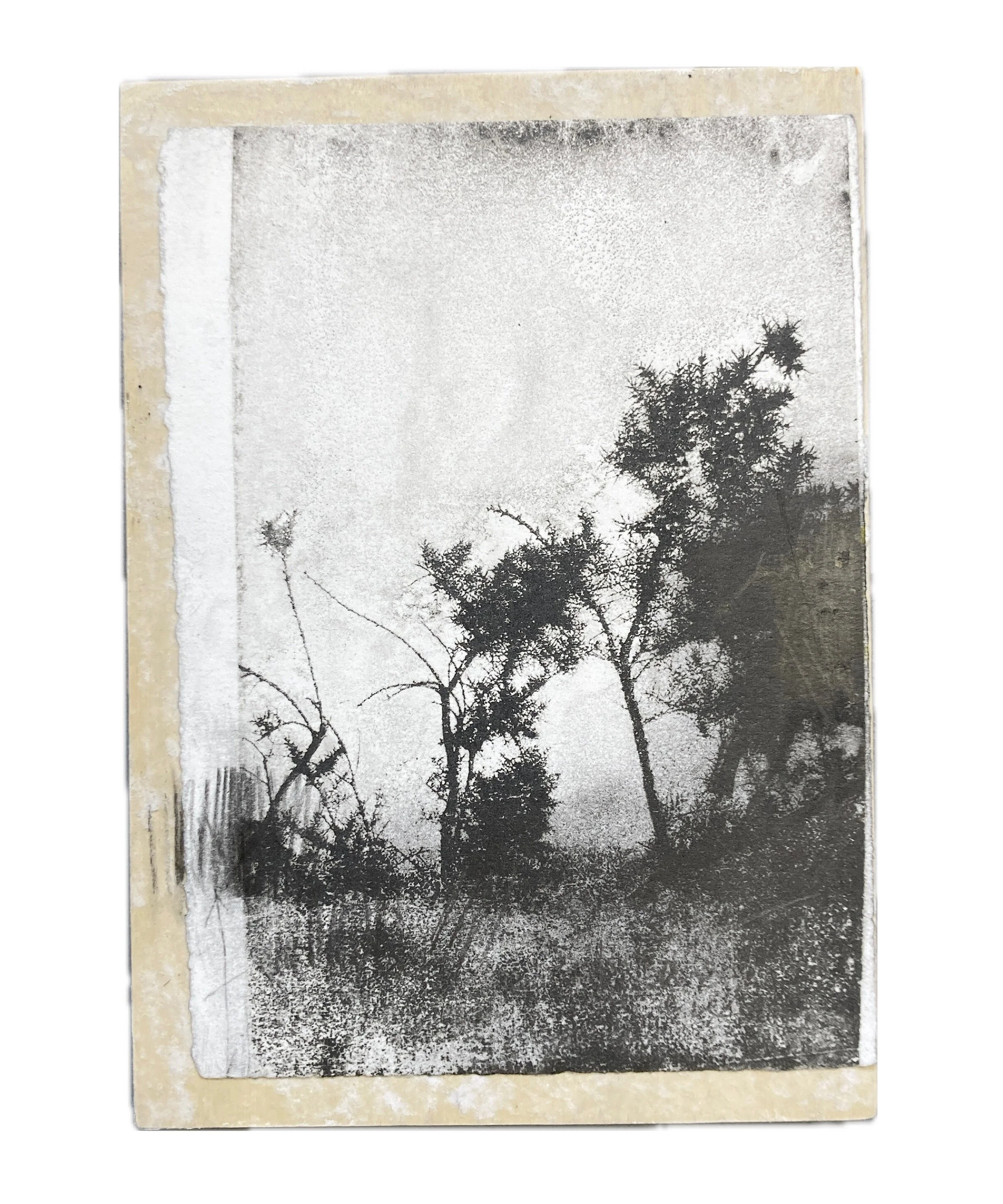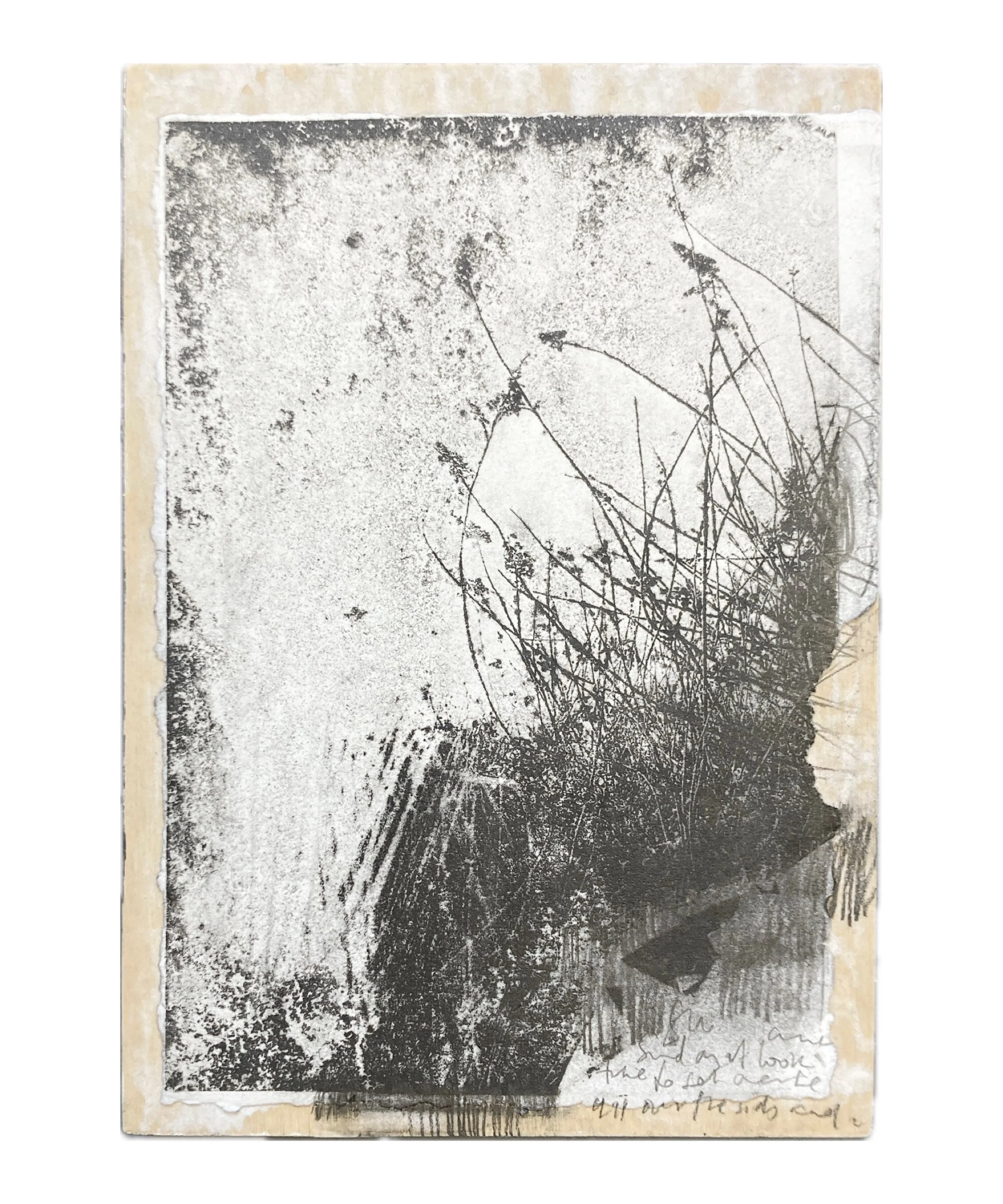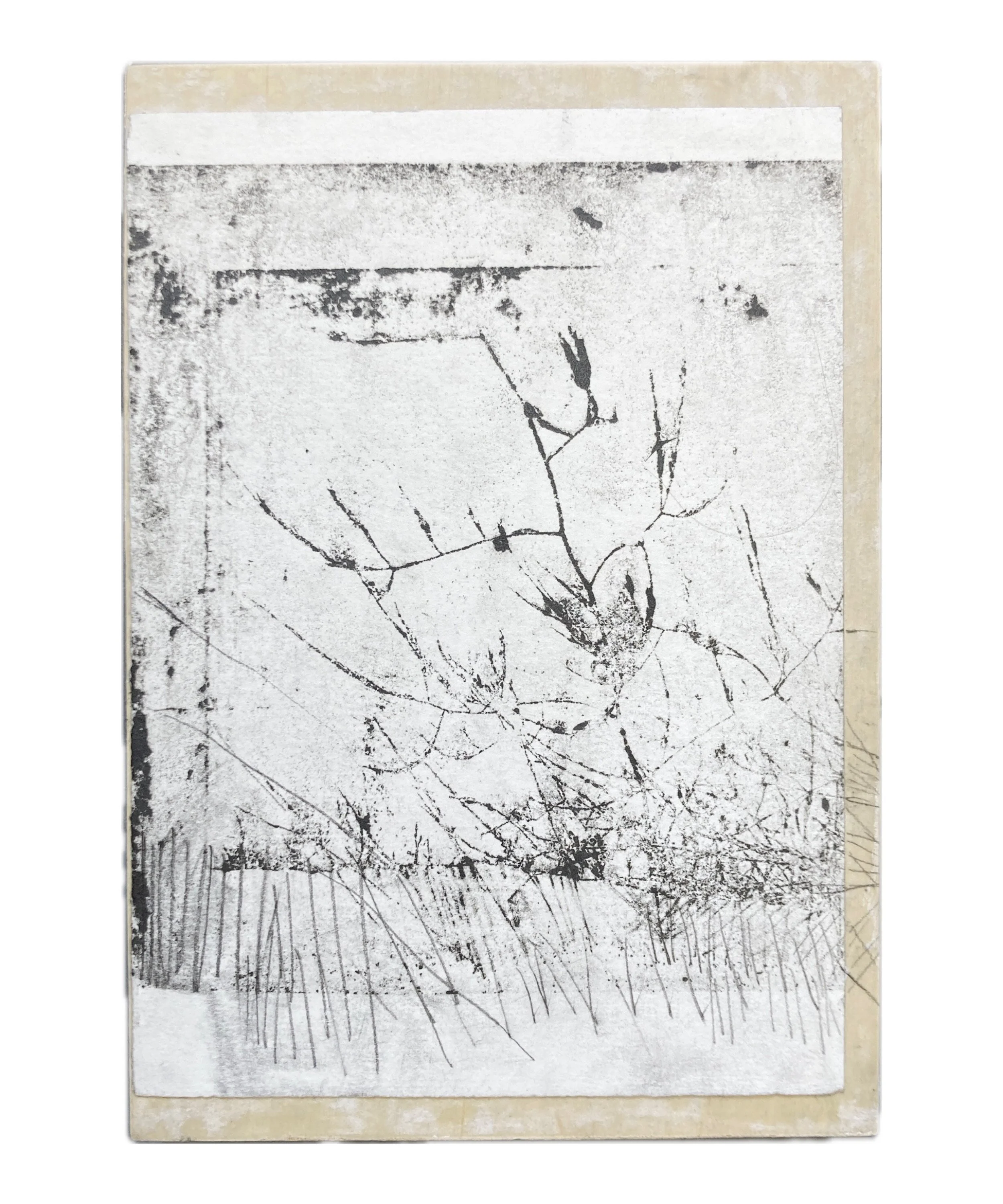Paper lithography print and graphite on cradled wood panel