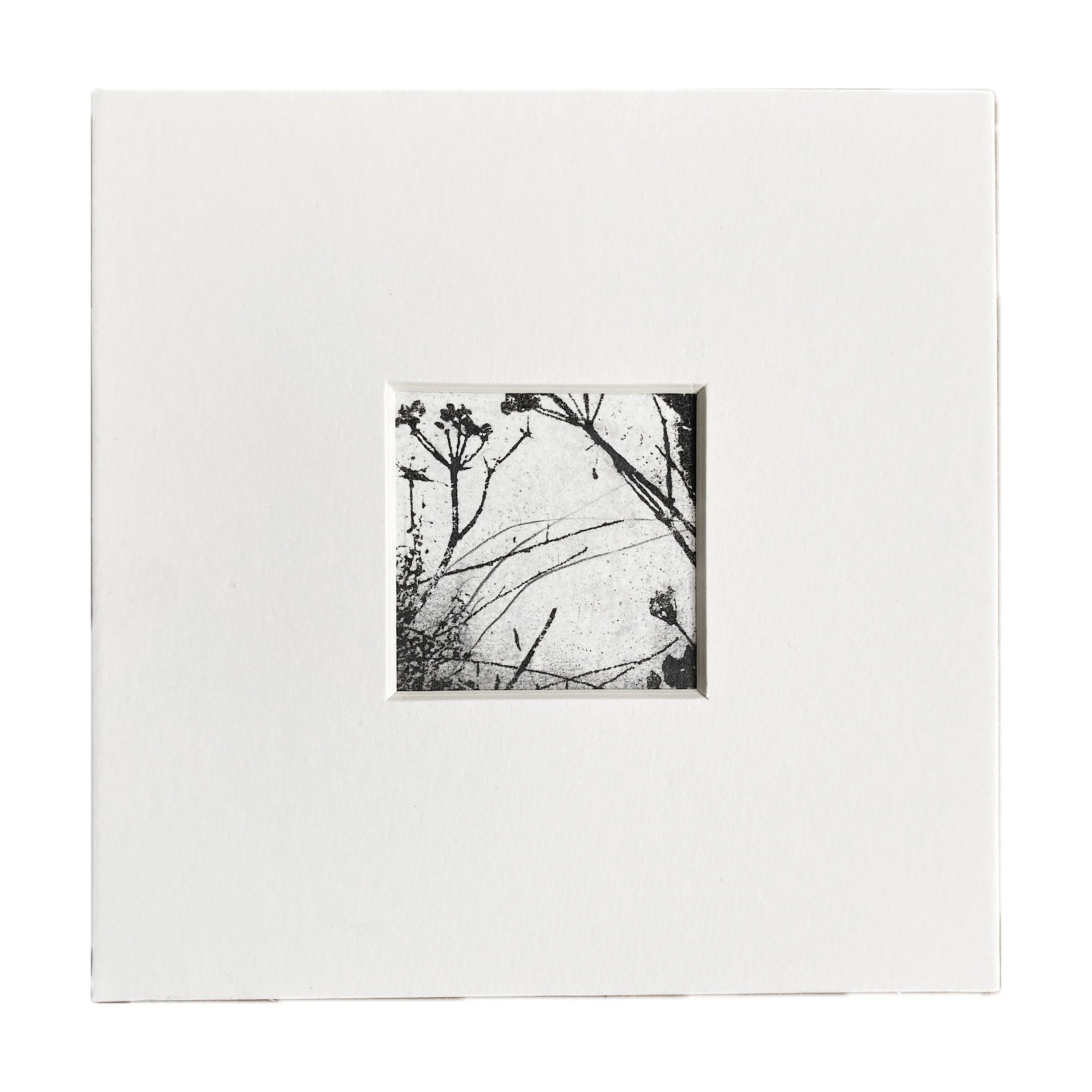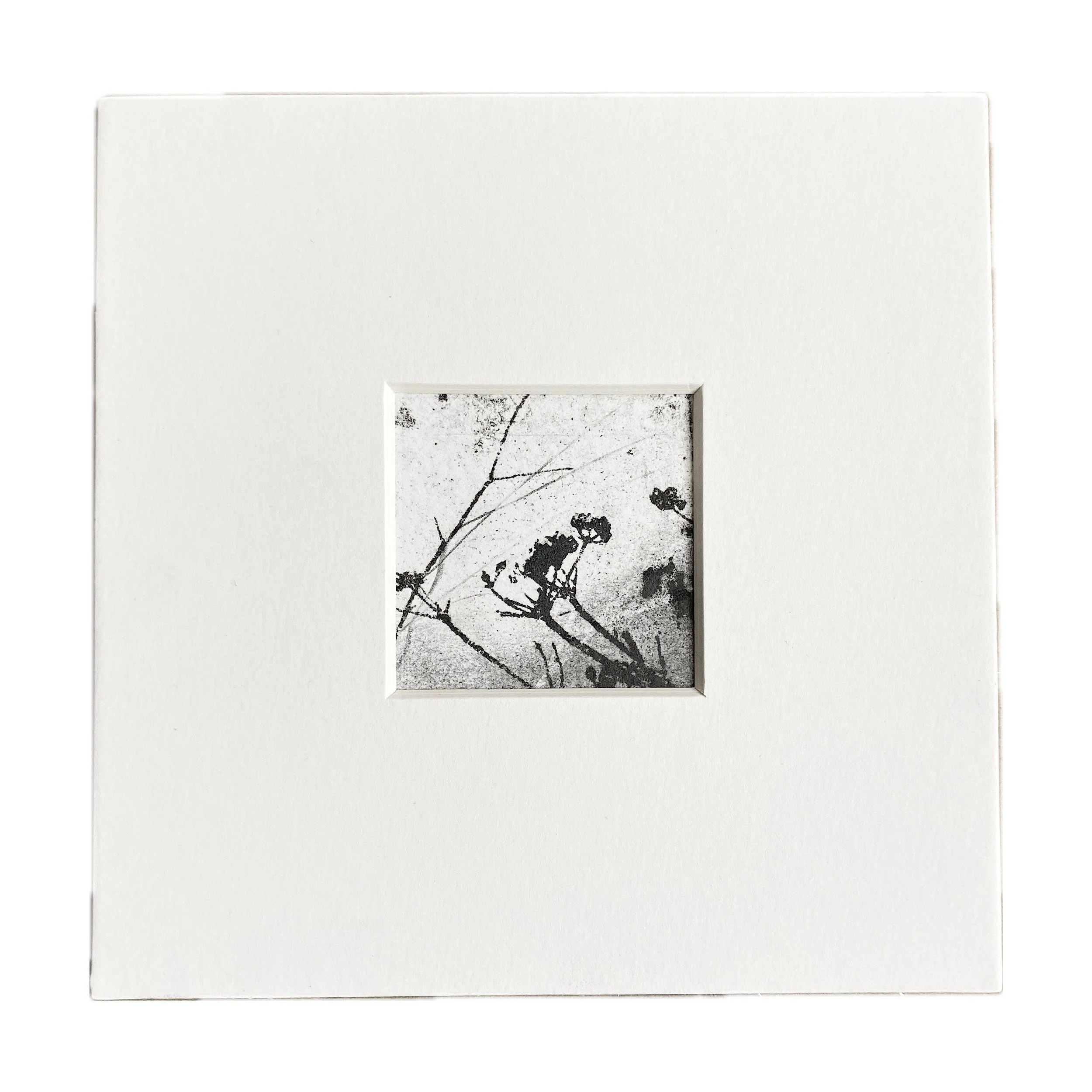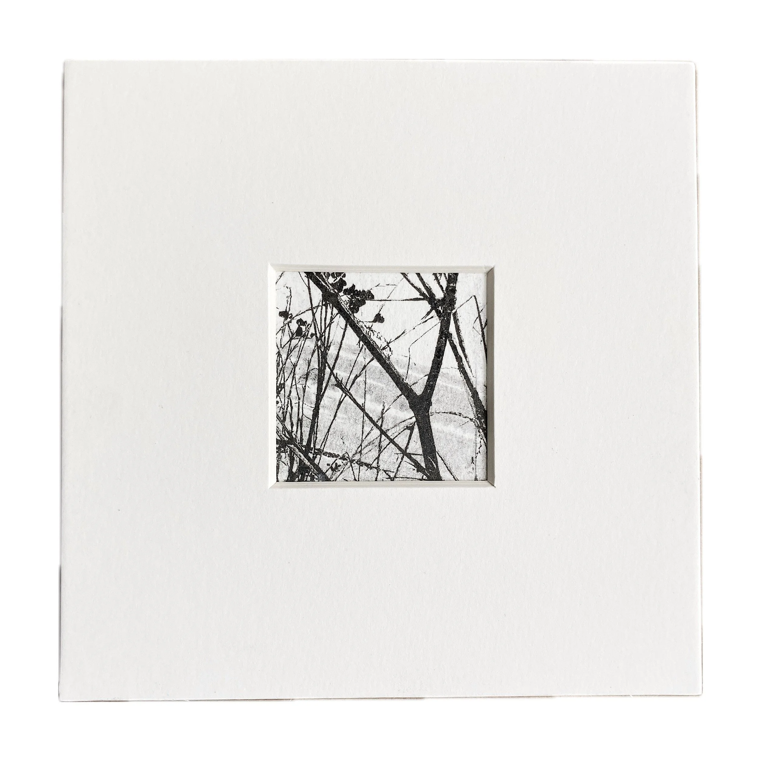 The mount size is 6x6 inches, the aperture is 2x2 inches. The prints are slightly larger than 2 inches to fit comfortably behind the mount which are available in soft white and black.