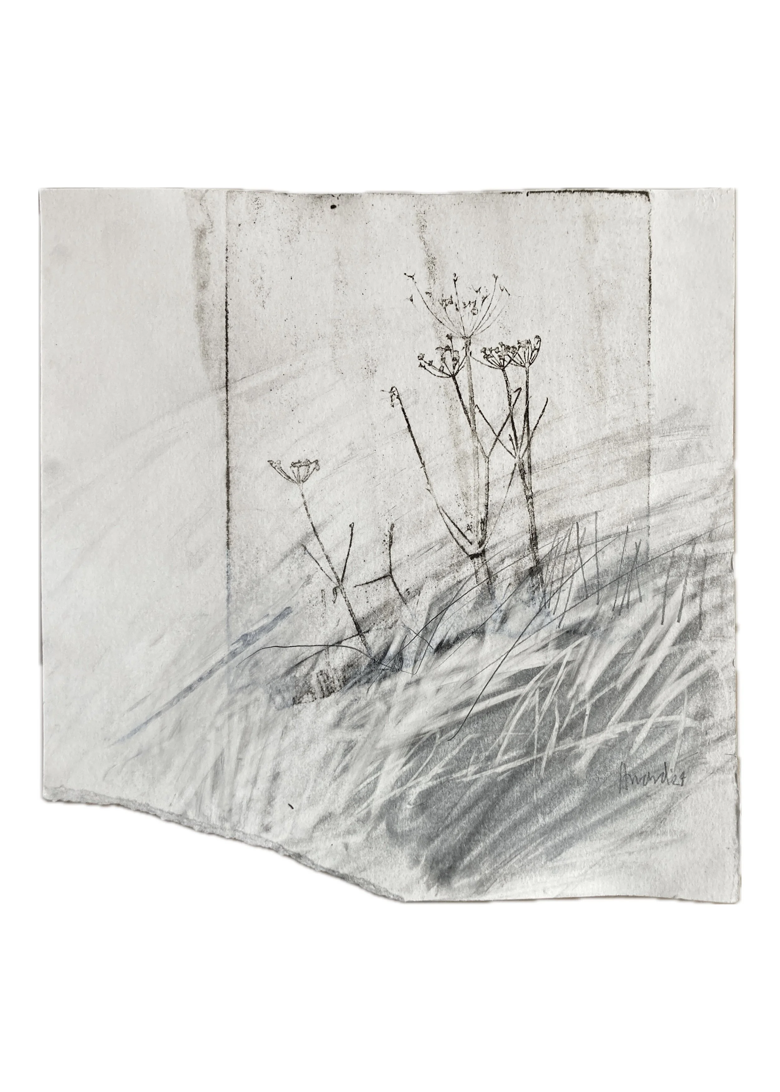 I am always inspired by summer time and the diversity and growth that is contained in these wild edges. Last year I spent many hours observing and drawing, picking apart the dense layers of visual imagery, deciding what to keep and what to let go of whilst being conscious of maintaining a sense that these were very much coastal hedgerows that we look over and through into infinite space towards the horizon.